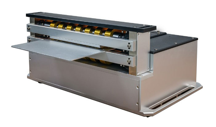 滾切機(MD-402)應(yīng)用于金標(biāo)試劑條, 尿試聯(lián)試劑條或血糖診斷試劑條等產(chǎn)品生產(chǎn)過程中把薄片狀材料(玻纖,濾紙, 濾血膜等)切成條狀產(chǎn)品的生產(chǎn)工藝,是膠體金快速診斷試劑條,生化試紙條等產(chǎn)品的高效切割的專業(yè)生產(chǎn)設(shè)備和實驗設(shè)備之一。